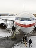 Wallmonkeys Peel and Stick Wall Decals - Airplane Is Checking and Preparing for the Flight on a Snowy Day - 60"H x 45"W Removable Graphic
